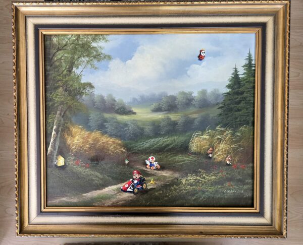 Das Originalbild wurde von L. ZELLER gemalt und zeigt eine lebhafte Landschaft, in der sich nun die Charaktere von der Super Mario Welt ausbreiten..